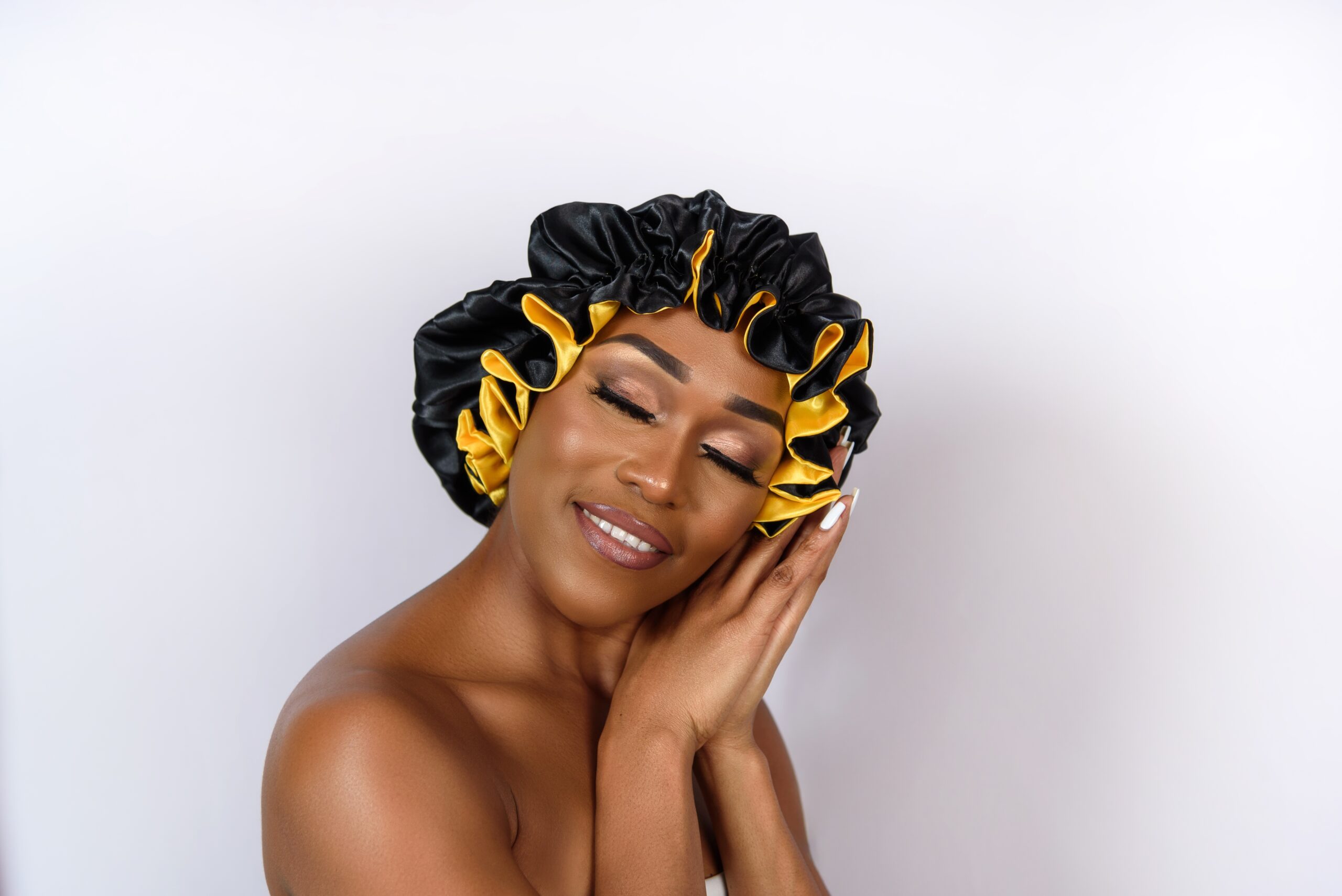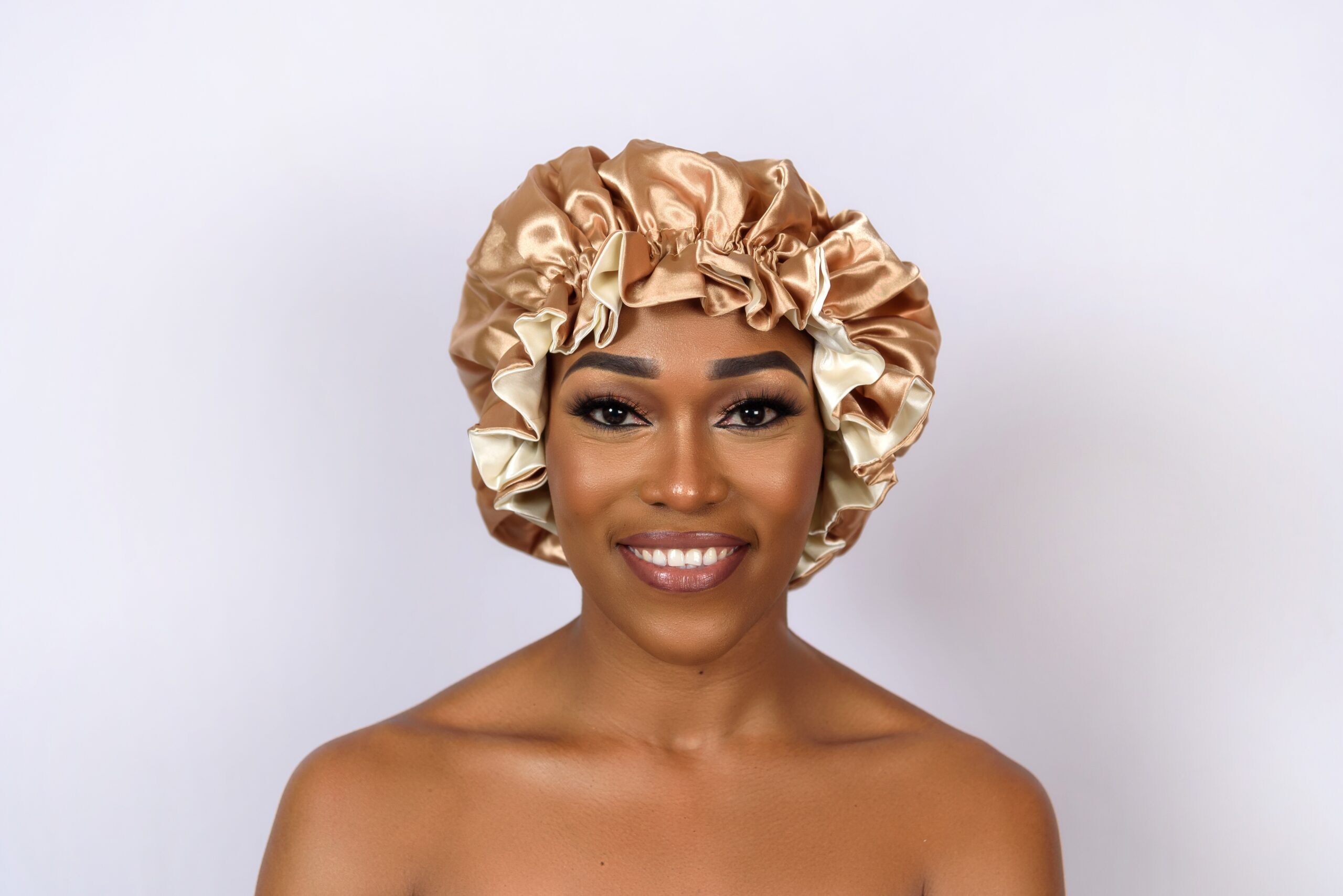Solid color Reversible Silky Satin Bonnet double layer sleep night cap to protect and maintain a healthy hair while sleeping.
